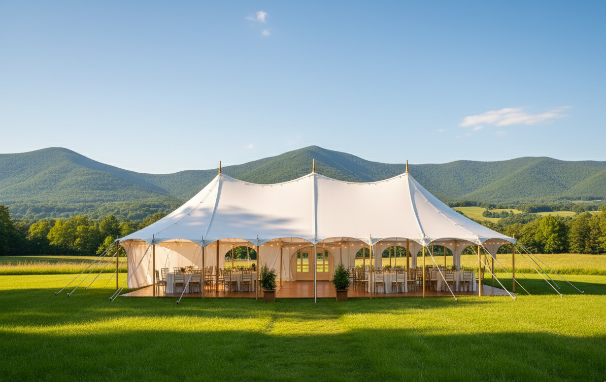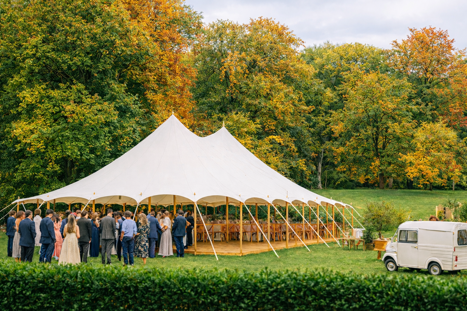 Dysponujemy nowoczesnym, mobilnym namiotem typu sailcloth, który pozwala na organizację eventów w plenerze – w dowolnej lokalizacji wybranej przez klienta.