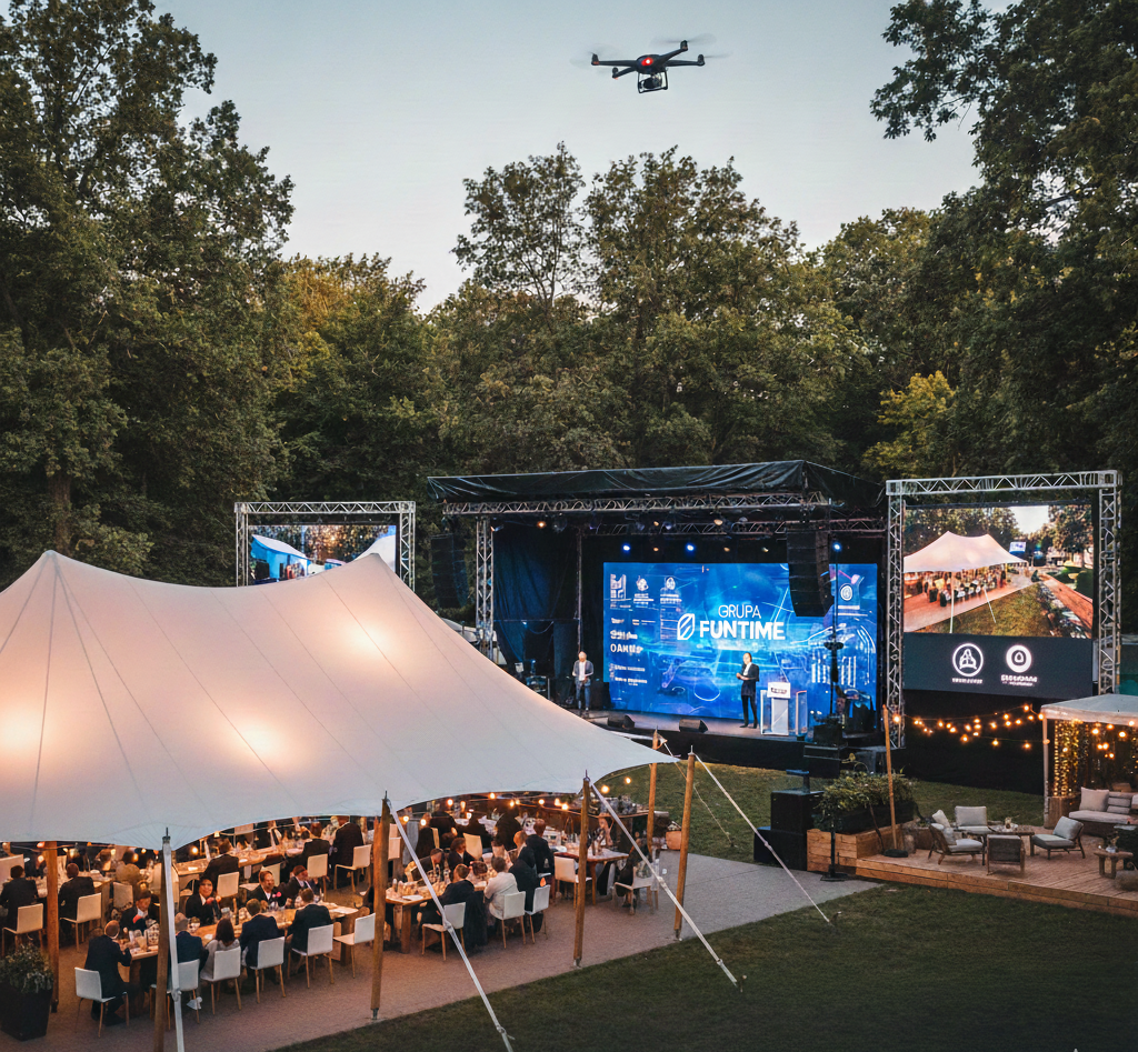 Łączymy doświadczenie z nowoczesnymi rozwiązaniami – oferujemy modułowy namiot typu sailcloth, streaming online z drona i profesjonalne relacje wideo, a także atrakcyjne programy dodatkowe.